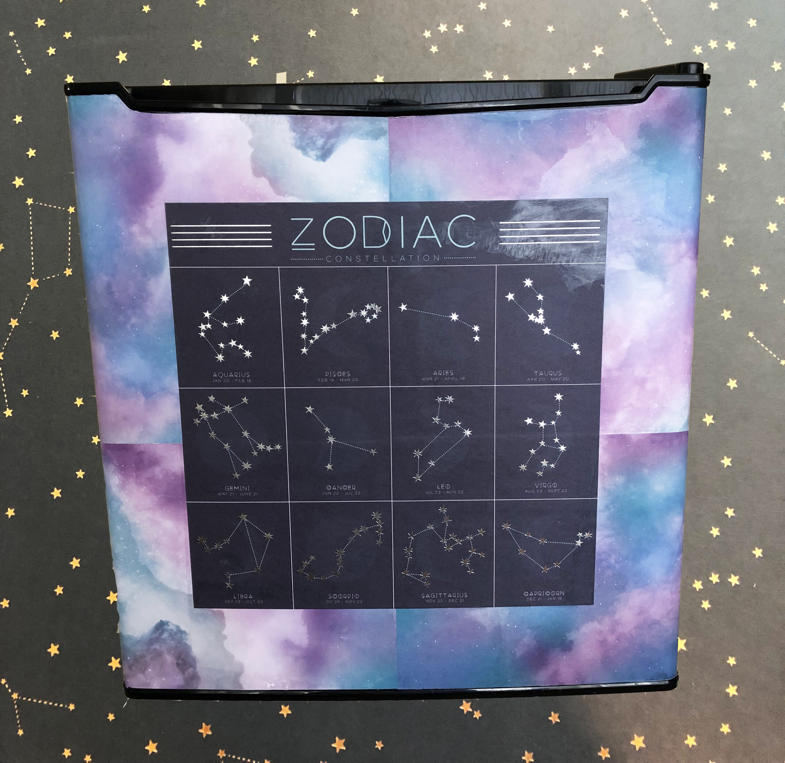 Dorm life…means mini fridge time! In this video, we are making over a mini fridge with zodiac scrapbook paper and Mod Podge. DIY a cute fridge for your dorm room!