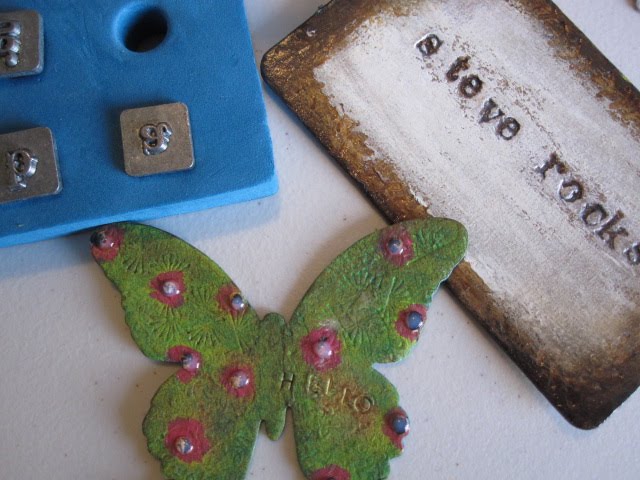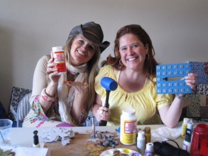 Designer Melody Ross and me playing with her new tools, papers and mod podge. P.S. the tools are awesome!