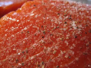 Sprinkle kosher salt and fresh ground pepper over the fish.