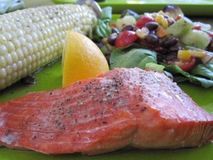 Grilled Salmon is about the easiest fish dish around and at 250 calories per serving you can’t beat it. This recipe “step-by-step” is for 2 servings…double, triple as needed.