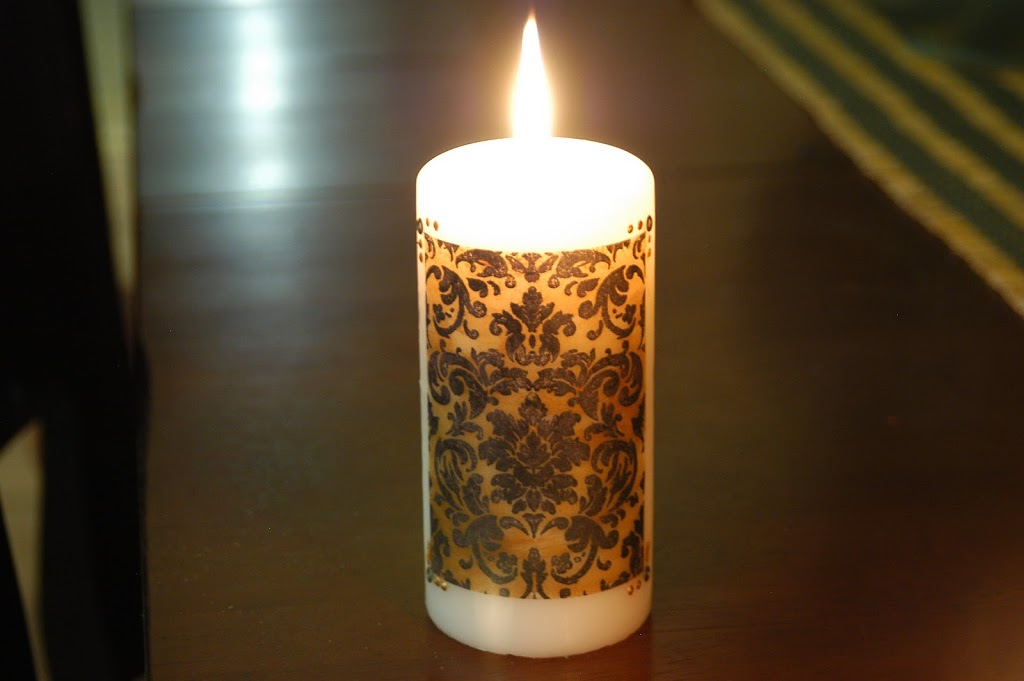 rubber stamped tissue paper transferred candles