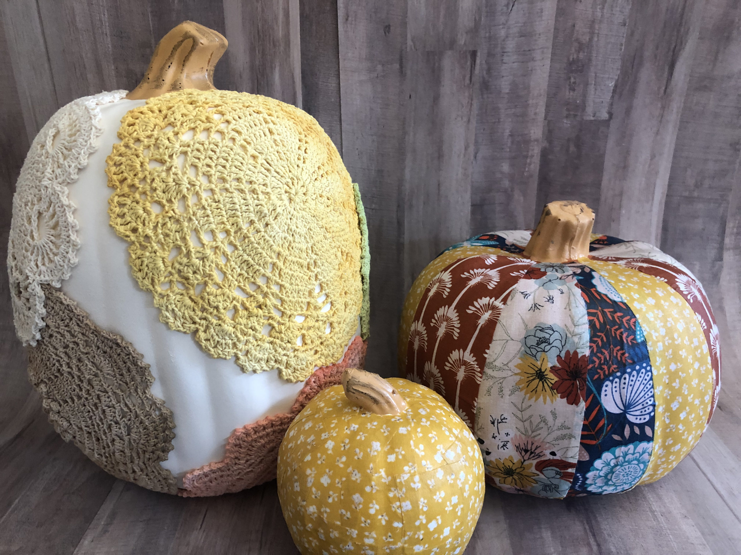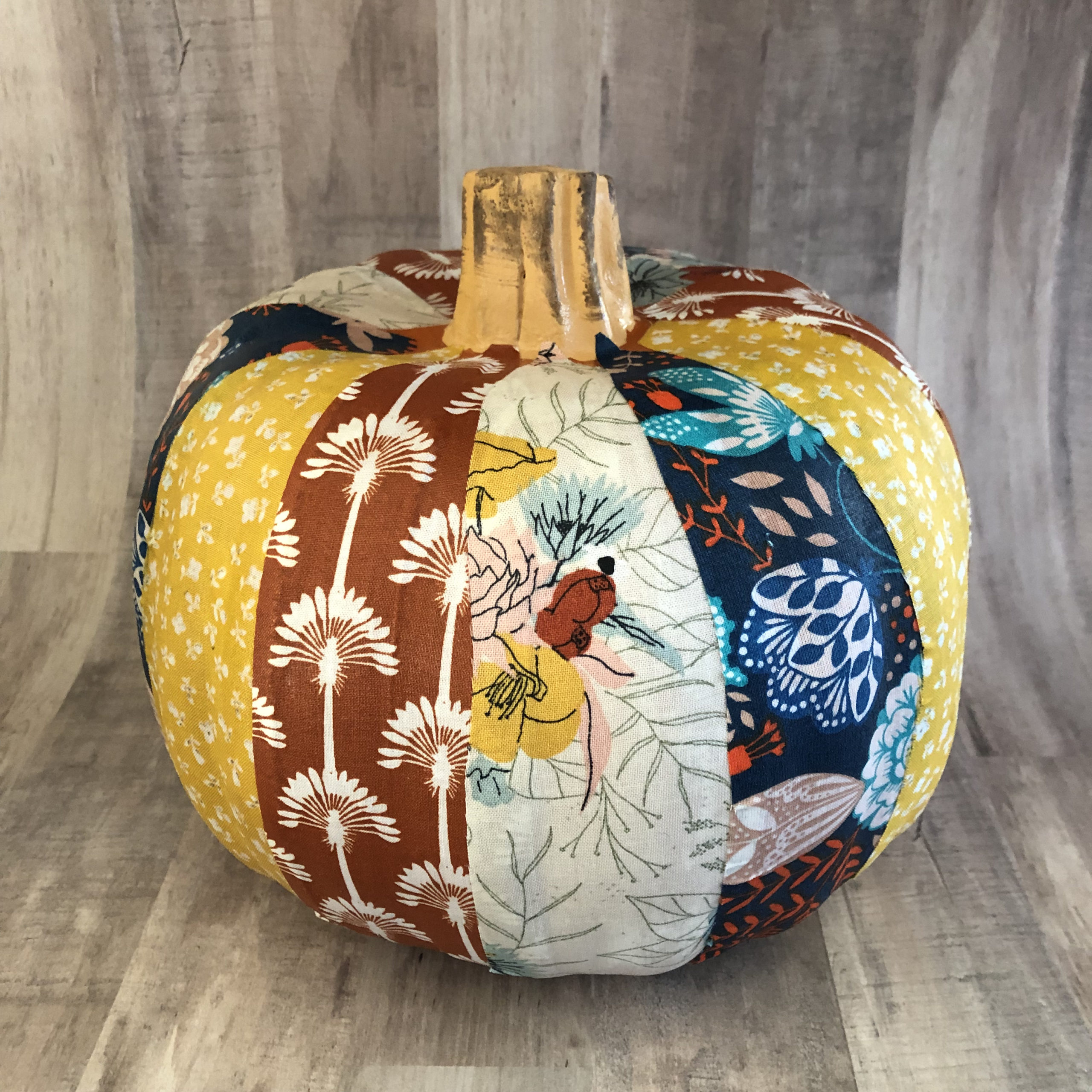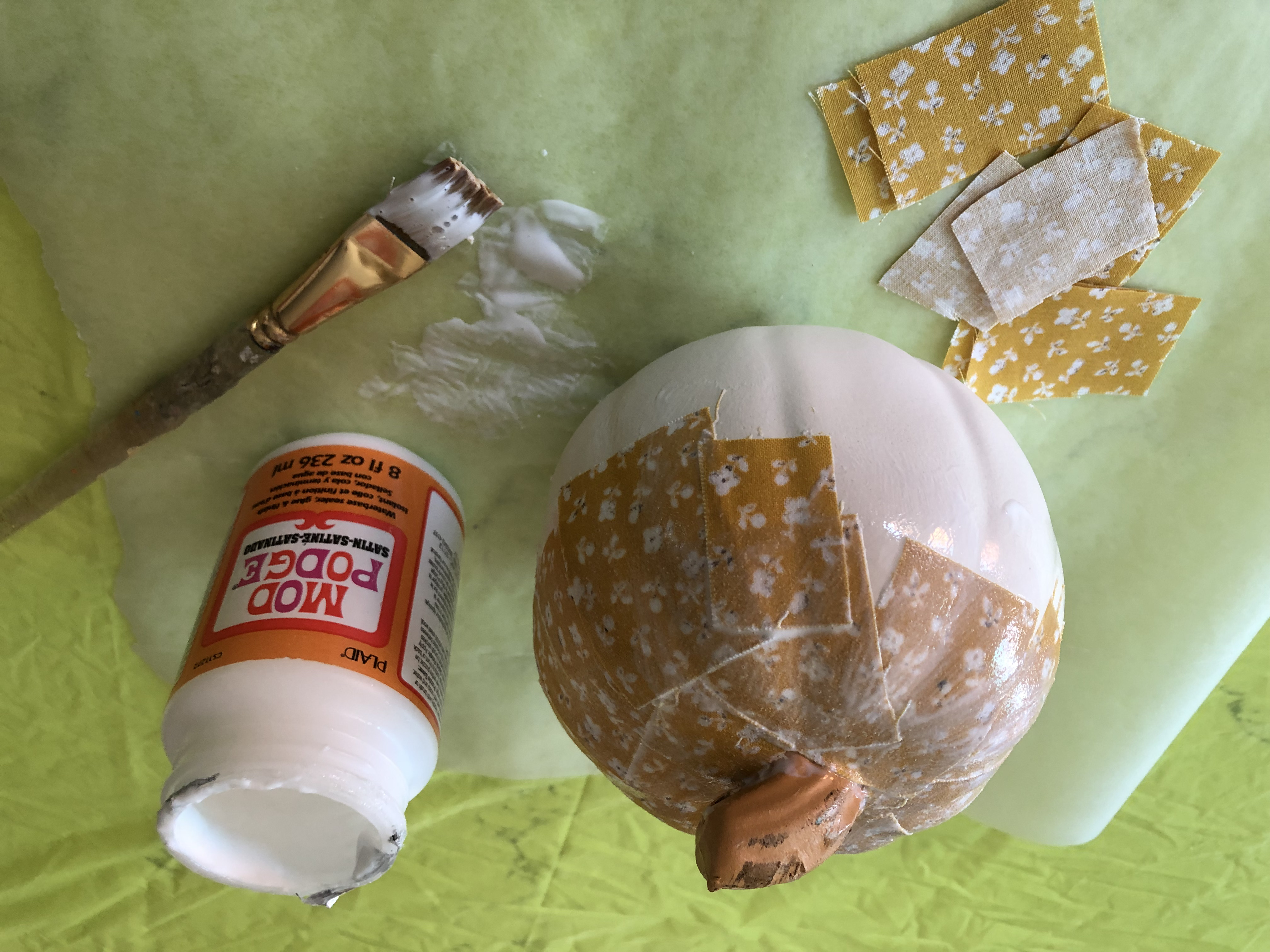 For the patchwork pumpkin designs, I am using Mod Podge Satin and 100% Cotton Fabrics.
